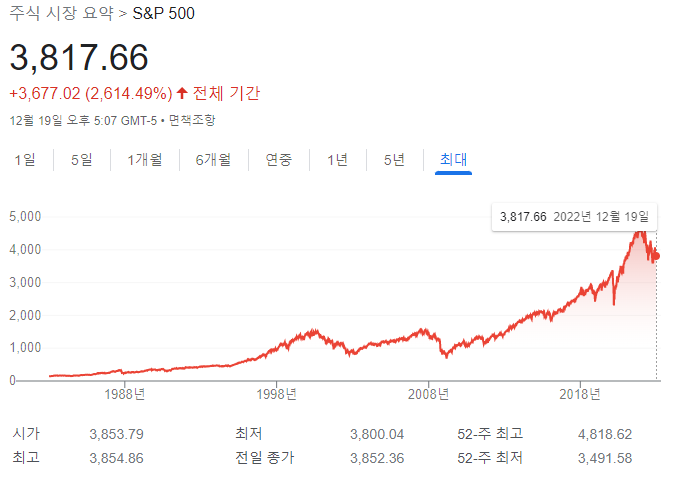 아래 사진은 지속적으로 우상향하는 S&P500 지수입니다.