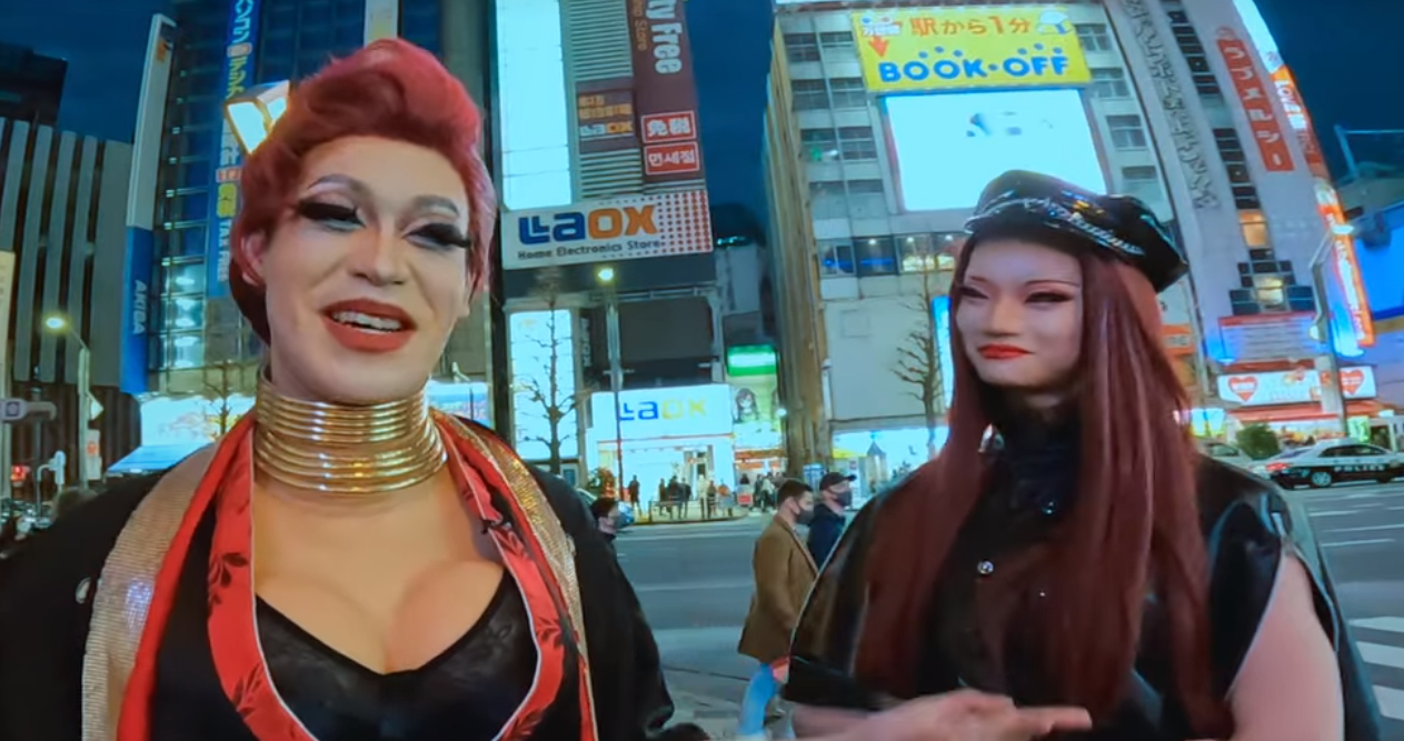 넷플릭스 성+인물에 나온 일본의 드래그 퀸 두 명은 세레스티아 그로운, 카토 아고미사일이라는 남성입니다.