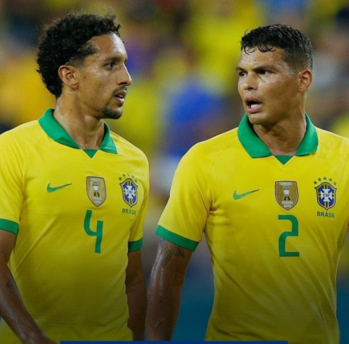 우리나라 공격수와 헤딩경합을 가장 많이 할 브라질 중앙수비수는 티아고 실바, 마르퀴뇨스 입니다.