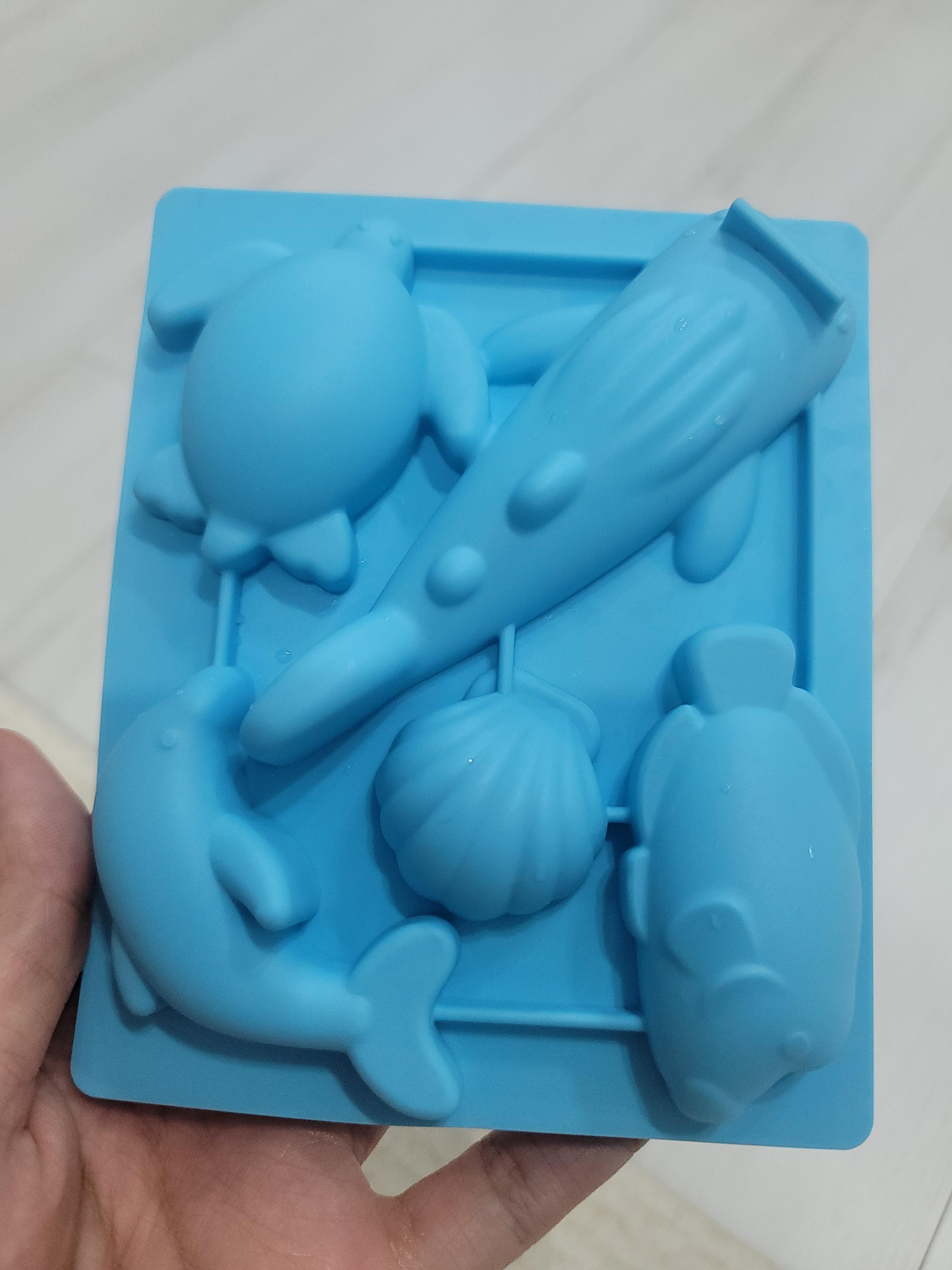 바로 '바다생물 얼음 트레이' 입니다. 실리콘 재질로 만들어진 트레이에 물이나 음료를 채워 얼리는 건데요, 모형에는 츄라우미 수족관의 대표격인 고래상어를 비롯해 거북이, 가오리, 조개 등 다양한 동물이 포함되어 있습니다.