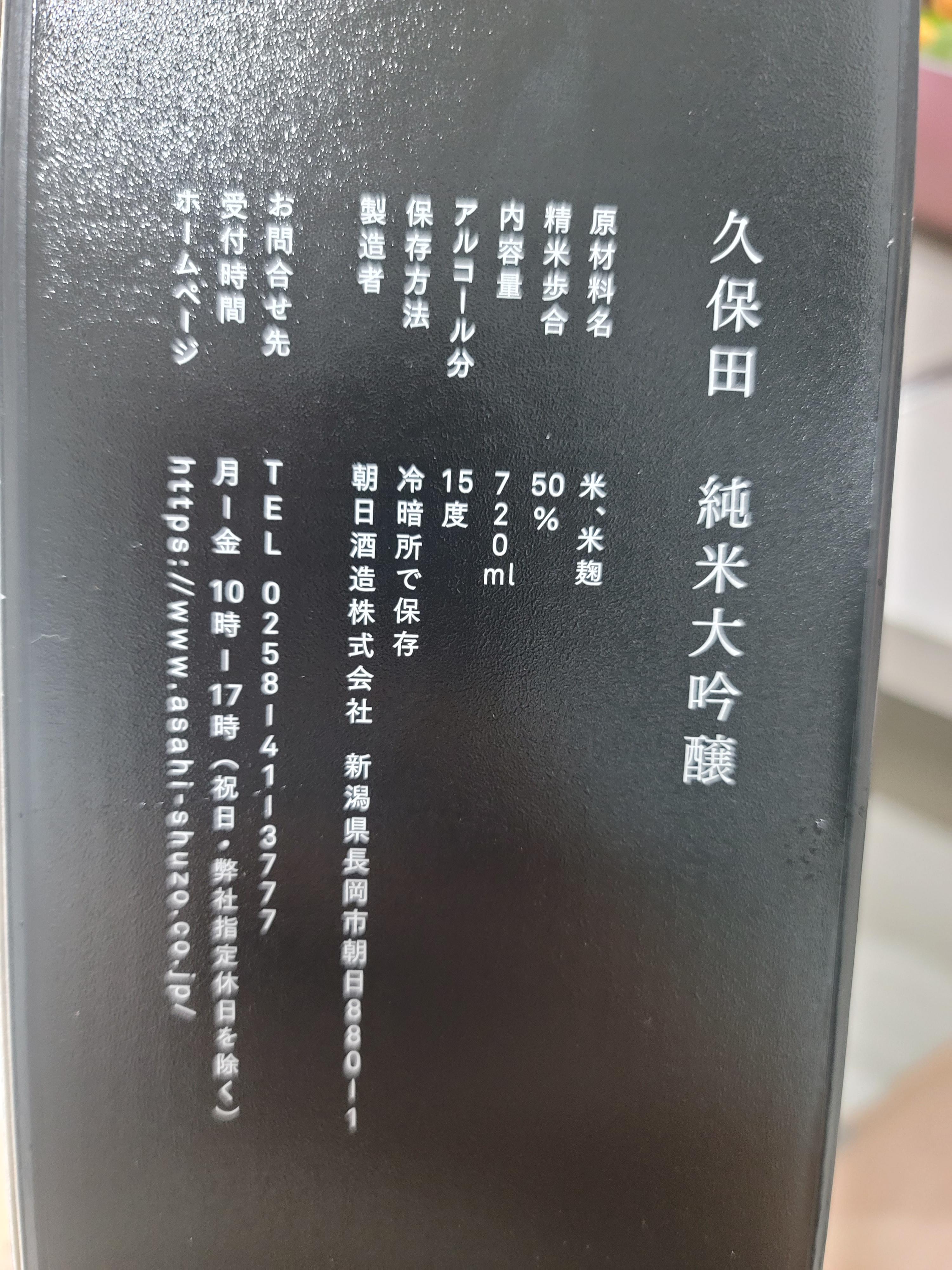 쿠보타 준마이다이긴죠는 이름 그대로 50% 도정한 쌀을 재료로 만들고, 따로 알코올을 섞지 않은 것이 특징입니다. 쿠보타 만쥬와 가격을 비교하면 약 40%에 불과한데, 만쥬보다는 아래등급으로 생각하시면 됩니다.